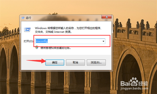 然后在弹出来的运行窗口,输入msconfig,点击确定,如图所示。