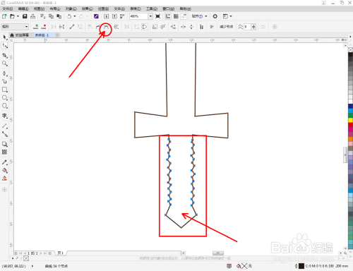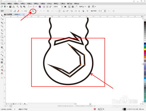 点击【钢笔东西】按图示绘制两个图案。点击【外形东西】选中图案上的所有点,点击【转化为曲线】后,选中图示图案上的节点,点击【光滑节点】将节点进行光滑处置并调整好节制点(如图所示);