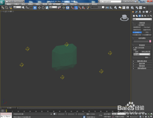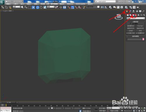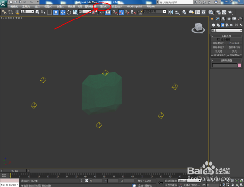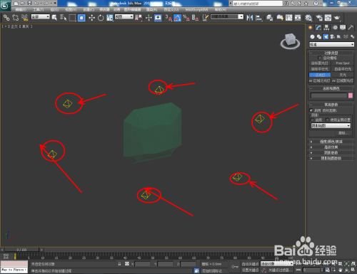 点击【建立】-【灯光】-【尺度】-【泛光灯】,在图示作图区域打上泛光灯并设置好泛光灯的各个参数(如图所示);