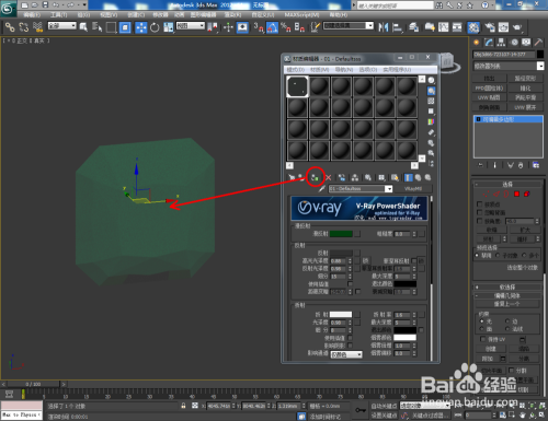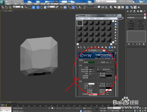 点击【材质编纂器】,弹出材质编纂器设置框,点击【standard】-【VAryMlt】设置一个Vary材质球,按图示设置好【反射】与【折射】中的各个参数,建造出一个祖母绿宝石材质球。完当作后将材质球附加给模子(如图所示);
