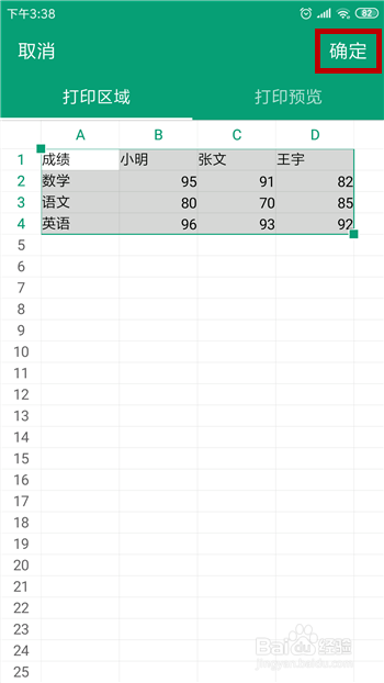 这样就可以选择打印区域了,按住拖动打印区域的大小,选择好后点击【确定】即可设置好打印区域。