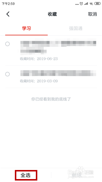 可以对所有的文章进行删除,点击左下角的【全选】选项。
