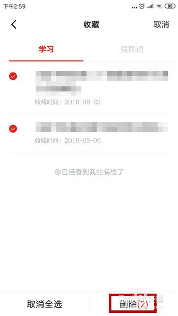 当然也可以对某些内容进行删除,勾选上要删除的文章后点击右下角的【删除】即可。