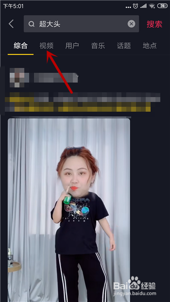 在搜刮里我们输入【超大头】并点击搜刮,在搜刮分类里点击【视频】。