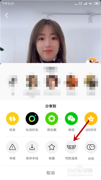 在底部呈现的分享界面里就能看到【同条目道具】,我们点击这个。