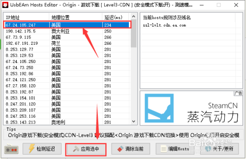 选中最低延迟的毗连,点击应用选中按钮,点窜当作功,如下图所示