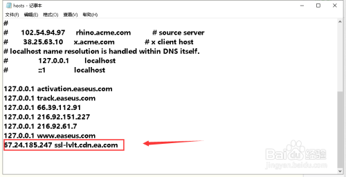 我们点击编纂hosts按钮,手动再确认一下是否点窜当作功,发现hosts最后面已经点窜添加当作功,如下图所示