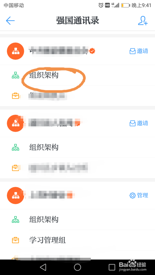 进入通信录后,选择本身要退出的进修组织,点击其下方的“组织架构”