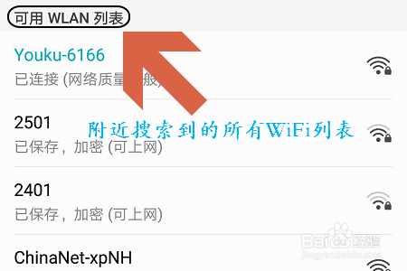 点击该WiFi名称,然后就会切换到四周所有可以搜刮到的无线网列表界面,如下图所示...