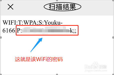 最后我们利用别的一部手机,然后打开微信里面的“扫一扫”对着此二维码扫描,然后即可在这部手机中显示该WiFi的名称以及对应的密码了,如图所示...