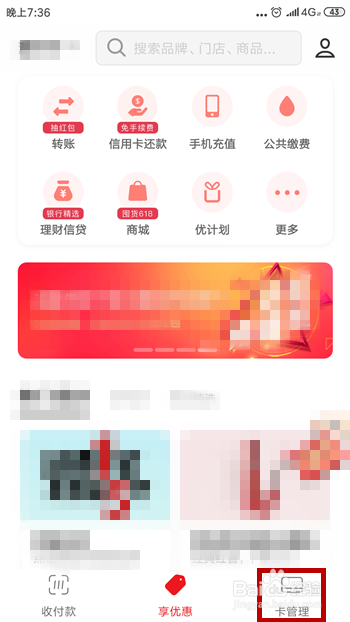 进入到云闪付的首界面时点击右下角的【卡办理】选项。