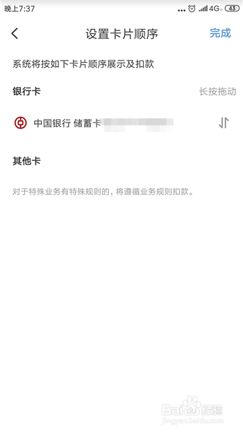 接下来就可以调整扣条目挨次,只需要按住银行卡进行拖动调整。