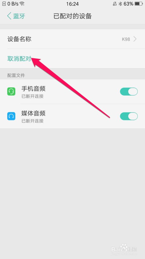 然后在手机中已经配对的打消。