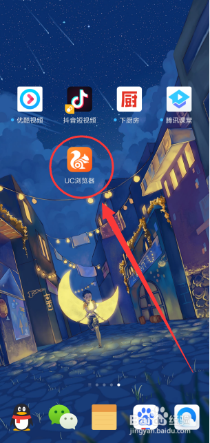 在手机桌面,点击我们已经下载好了UC浏览器,如图所示