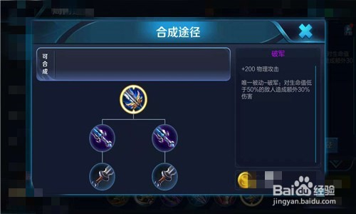 最后一个可以选择破车,对面仇敌有一半血量时,也经不起他几下进犯,只要把这六件装好,在操作上稍稍注重,就能超神。
