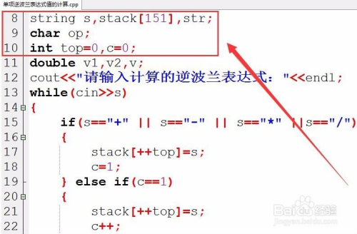 接着,用while轮回输入单项的逆波兰表达式。