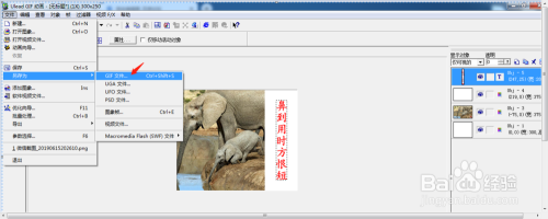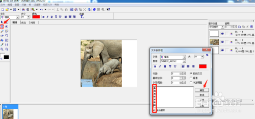 新建文字图层,在文本条目框中编纂文字内容、字体大小、字体颜色等等。调整好文字图层的位置后,文件-->另存为-->GIF文件。