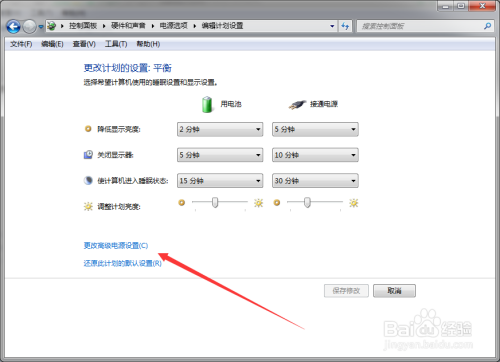 点击“更改高级电源设置”按钮;
