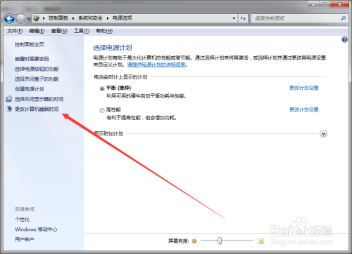 点击“更改计较机睡眠时候”按钮;