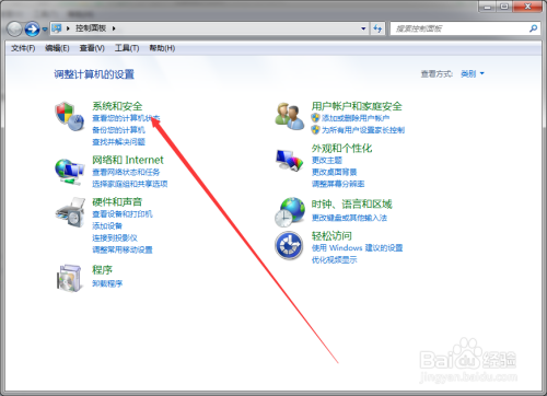 点击节制面板窗口中的“系统和平安”按钮;