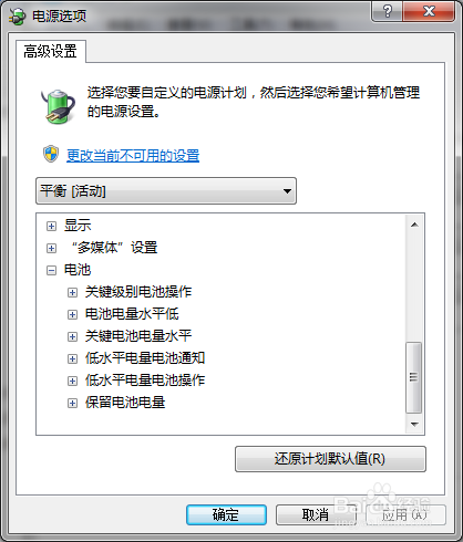 睁开对话框中“电池”的子目次;