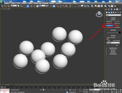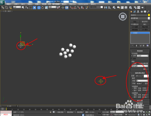 点击【建立】-【灯光】-【尺度】-【泛光灯】,在图示作图区域打上泛光灯并设置好泛光灯的各个参数(如图所示);
