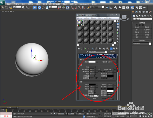 点击【材质编纂器】,弹出材质编纂器设置框,点击【standard】-【VAryMlt】设置一个Vary材质球,按图示设置好【反射】与【折射】中的各个参数,建造出一个珍珠材质球。完当作后将材质球附加给模子(如图所示);