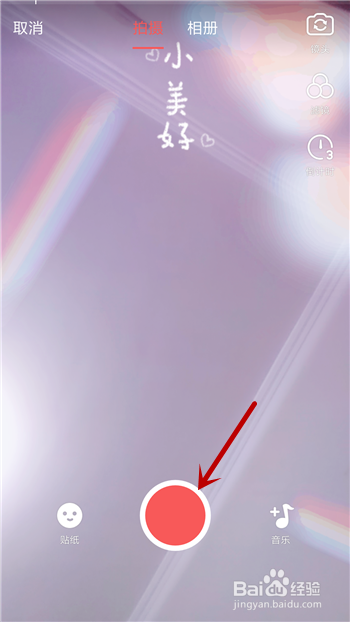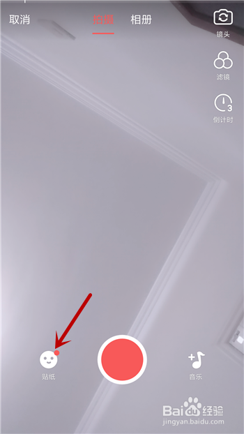 在小视频的录制界面里的左下角就是【贴纸】,点击起头利用贴纸。