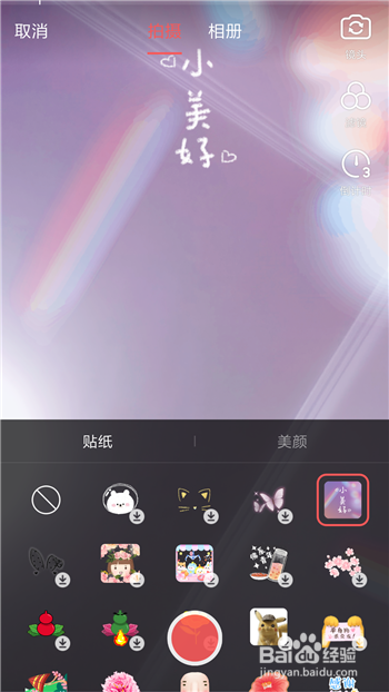 贴纸界面里有良多有趣的贴纸,我们可以点击肆意喜好的利用。