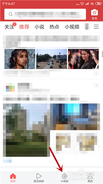 在打开今日头条后点击底部导航栏中的【小视频】,如图所示。