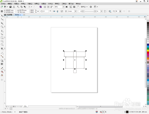 点击【矩形东西】按图示在作图区域依次绘制出三矩形图案,并按图示调整好矩形图案之间的位置关系(如图所示);
