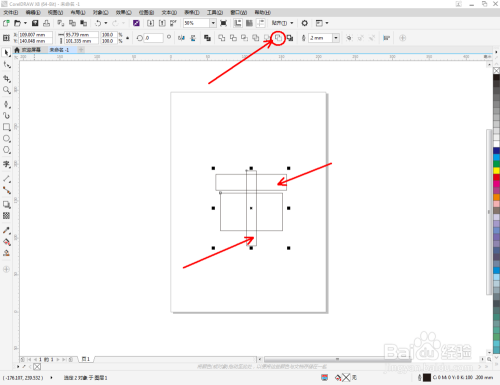 点击【选择东西】选中图示两个横标的目的矩形图案后,点击【归并】将两个图案归并为一体。完当作后,选中所有图案,点击【移除前面临象】将前面的竖标的目的矩形图案部门移除(如图所示);