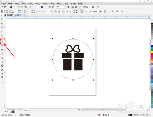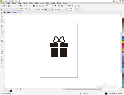 点击【选择东西】选中礼品盒本家儿体图案,点击右边色板中的黑色色块,将图案填充为黑色。到这里我们的方形礼品盒图标便全数建造完当作。