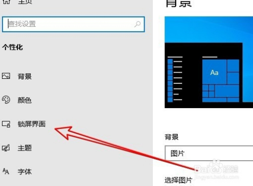 然后在打开个性化窗口中点击左侧边栏的锁屏界面菜单项