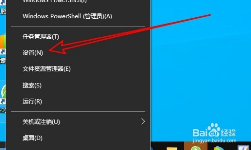 在windows10桌面右键点击起头按钮,在弹出的菜单中选择设置的菜单项