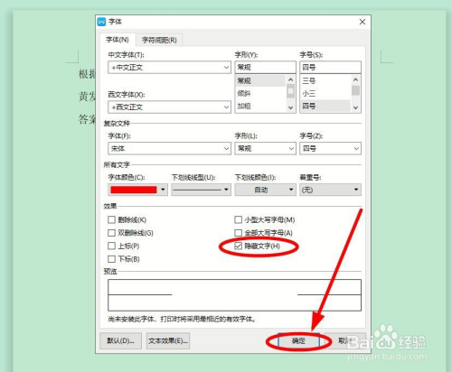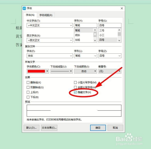 在弹出的“字体”对话框中,找到并单击“字体”选项卡中“结果”下面的“埋没文字”,勾选该功能
