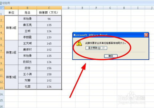 - 本操作要求归并单位格的单位格数量要一致