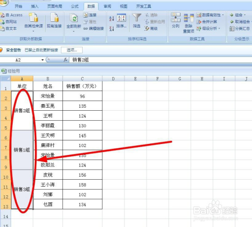 此刻把光标放在要排序的列中肆意含稀有据的单位格区域,好比发卖1组