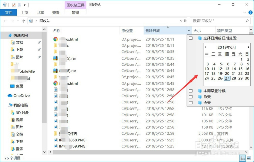 进入收受接管站之后,可以按照删除日期进行筛选,若是记不住具体的删除日期,可以选择“本周早些时辰”,如图所示。