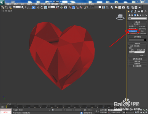 点击【建立】-【灯光】-【尺度】-【泛光灯】,在图示作图区域打上泛光灯并设置好泛光灯的各个参数(如图所示);