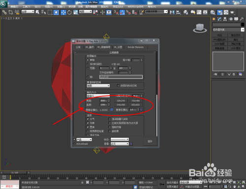 点击【衬着】-【衬着设置】,弹出衬着设置对话框,按图示设置好输出大小参数后,点击【衬着】将附好红宝石材质的模子衬着出图即可。