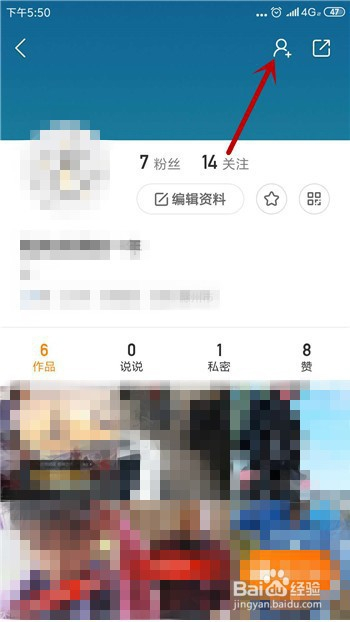 点击打开了快手小我本家儿页后点击右上角的【老友】功能,如图所示。