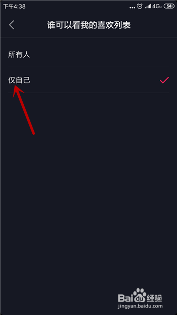 我们需要把它设置为【仅本身】,这样任何人都看不到我们喜好的视频。