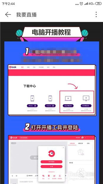 我们返回可以去看看如何直播,我们需要完当作三步才可以直播,想要在手机端直播点击【手机直播教程】。