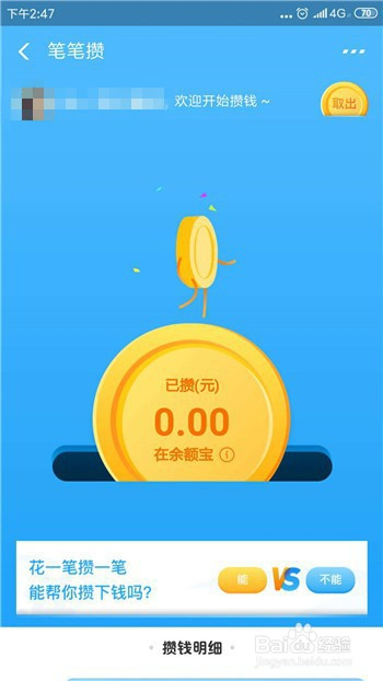 当作功输入密码后就开通了笔笔攒,可以看到今朝我们的余额是没有的,只要完当作支付即可获得金额。