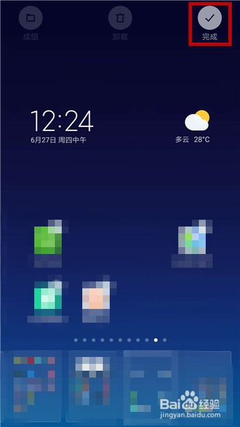 这样就可以把气候添加到手机桌面上,然后点击右上角【完当作】即可添加当作功,如图所示。
