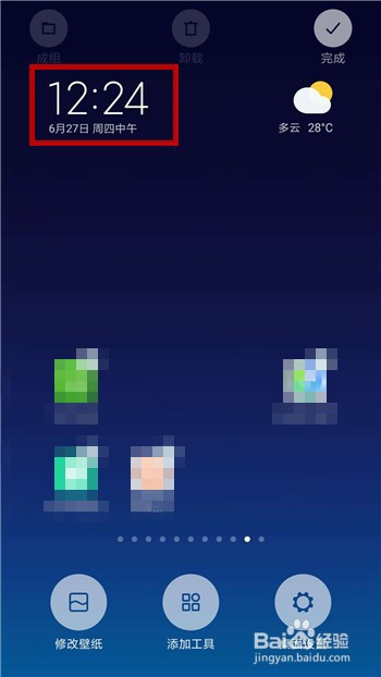 打开小米手机,在想要添加时候或者气候的桌面上长按肆意空白处。