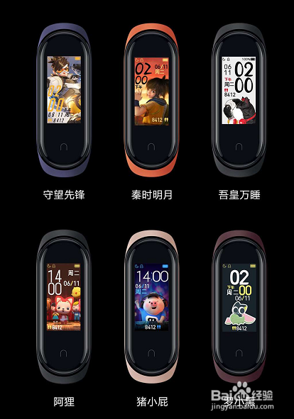 并且因为手环4是彩屏的,所以手环的的【表盘本家儿题】更都雅,也有更多的样式可供选择。