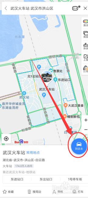 然后,输入你的目标地,好比说武汉火车站,点击后面的搜刮,如图所示