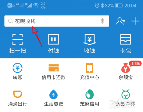 解锁手机进入支付宝后,在本家儿界面选择上方的输入框进入。